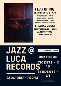 We’re delighted to welcome bassist Martin Zenker from Germany for a special one-off performance collaborating with members of the SETU music faculty. Phill Collins - keyboard, Dylan Bible - guitar, Danny Pullman - tenor saxophone, Chris O’Sullivan - drums.