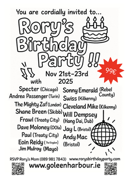 Shane Breen (VCR / Skibbereen) — originally from West Cork and one of Rory’s best mates. Shane recently returned from Vancouver, released his own productions with Vision Collective before pouring his all into Ár n-Áit, a cultural space and coffee shop dedicated to the propagation of art and creativity for the locals of Skibbereen.