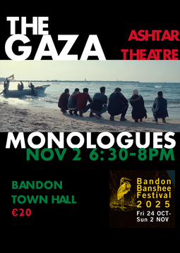 Panel discussion chaired by actor & activist Maeve Higgins, her guests include director Nasser AlSwirki and guests, Kathy Glavanis-Grantham (UCC Sociologist & Middle East expert), and Pat Bracken (Psychiatrist and Doctor of Philosophy)