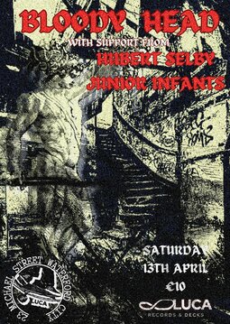 Bloody Head from Notthingham, England are touring for their Seventh release "Perpetual Eden" Bloody Head occupy an almost unique place in the world you might call "Noise Rock" (If you were the sort of person who files their records by invented genres) They are supported by Hubert Selby Junior infants, A garagey, grunge punk band based out of Dublin with members from Waterford.
